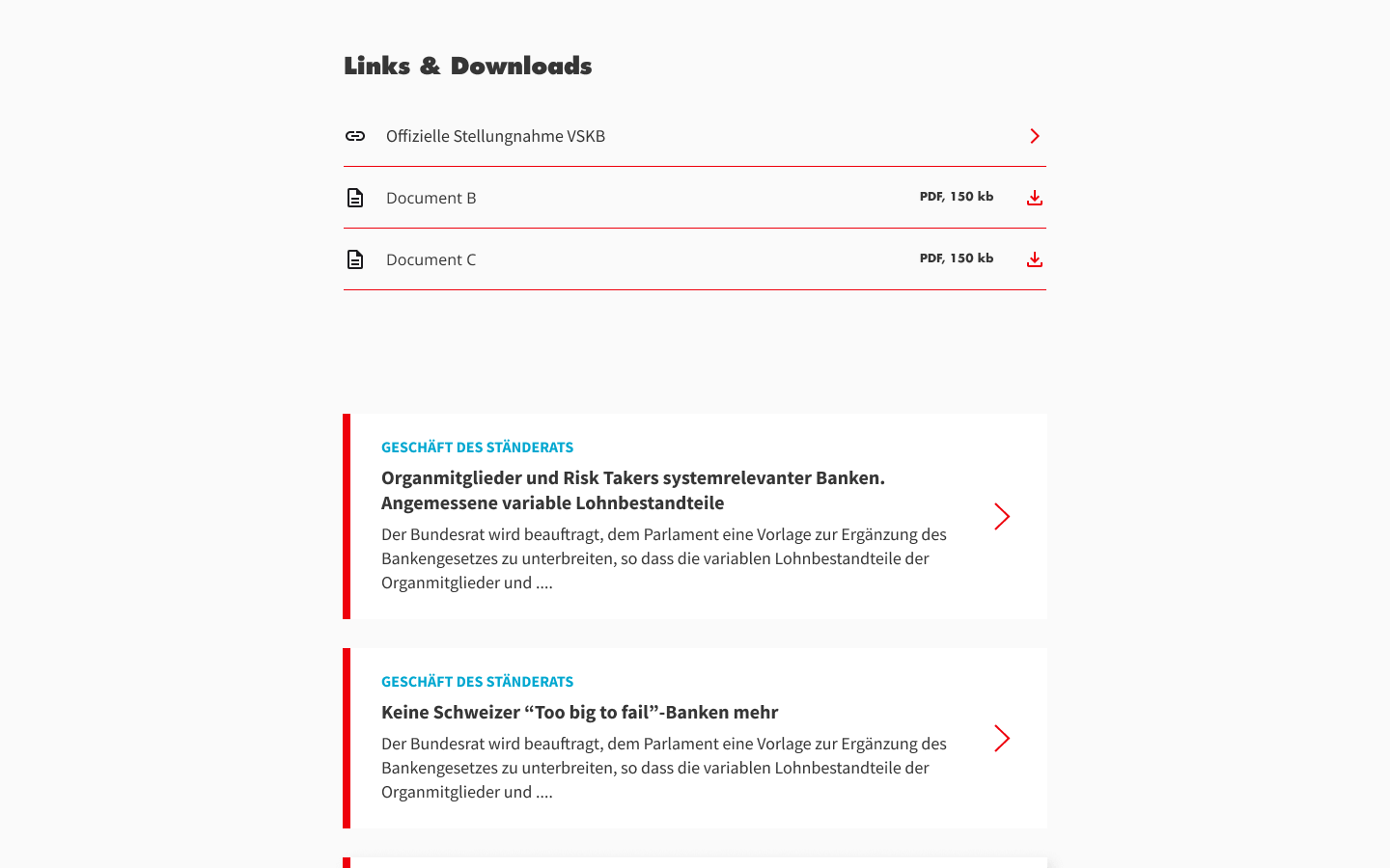 Der Verband Schweizerischer Kantonalbanken (VSKB) ist die Dachorganisation der 24 Kantonalbanken. Er pflegt die gemeinsame Dachmarke und engagiert sich für eine vielfältige Schweizer Bankenlandschaft. Beim Relaunch der Webseiten umfasste meine Arbeit als Visuelle Projektleitung sowohl die konzeptionelle Gestaltung als auch das Screen- und UI-Design.