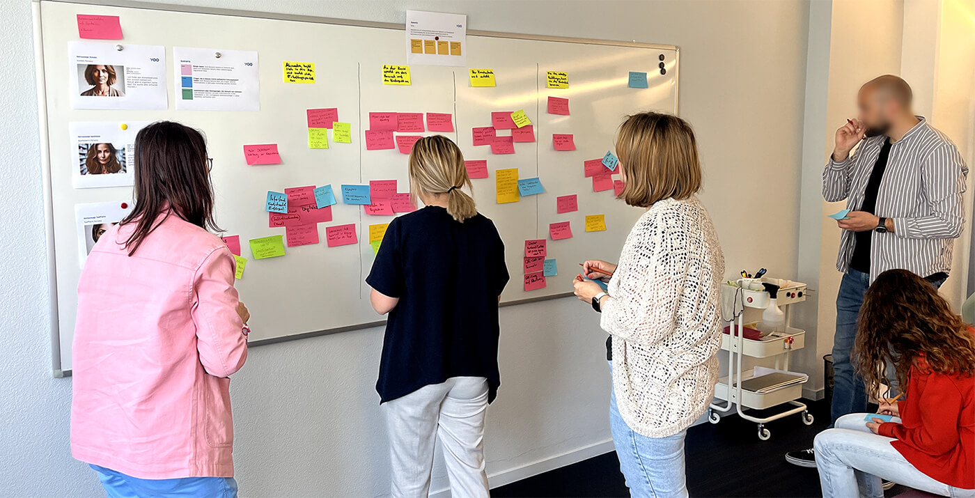 Entlang der drei Handlungsfelder erarbeiteten wir konkrete Lösungsansätze, mit dem Ziel, technische Machbarkeit, geschäftliche Anforderungen und Nutzerbedürfnisse von Beginn an zusammenzuführen. Die Ergebnisse wurden thematisch gruppiert und priorisiert. Im Fokus stand dabei ein stufenweiser Anmelde- und Registrierungsprozess, der den Einstieg in der Verkaufssituation ermöglicht und später eigenständig abgeschlossen werden kann.