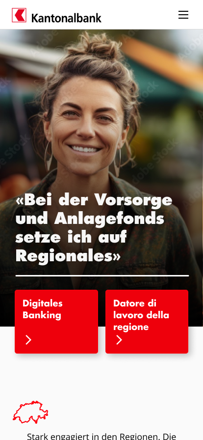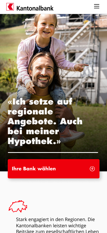 Im Rahmen der Marketing-Kampagne wurde eine flexible Webseite konzipiert, die die Hauptthemen der Kantonalbanken – Vorsorge, Anlagen und Hypotheken – gezielt und konkret adressiert. Mithilfe einer kurzen, überzeugenden Beweisführung wird der Nutzer nahtlos zu «seiner» Kantonalbank und den passenden Angeboten geleitet.