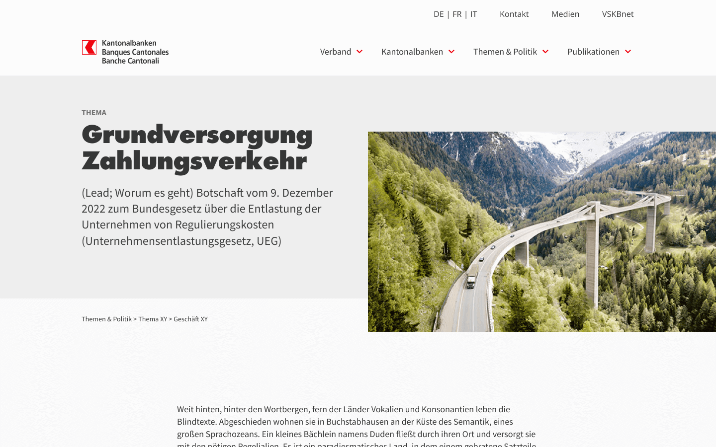 Der Verband Schweizerischer Kantonalbanken will seinen digitalen Auftritt an moderne Standards anpassen und die vielfältigen Bedürfnisse seiner Zielgruppen besser zu bedienen.