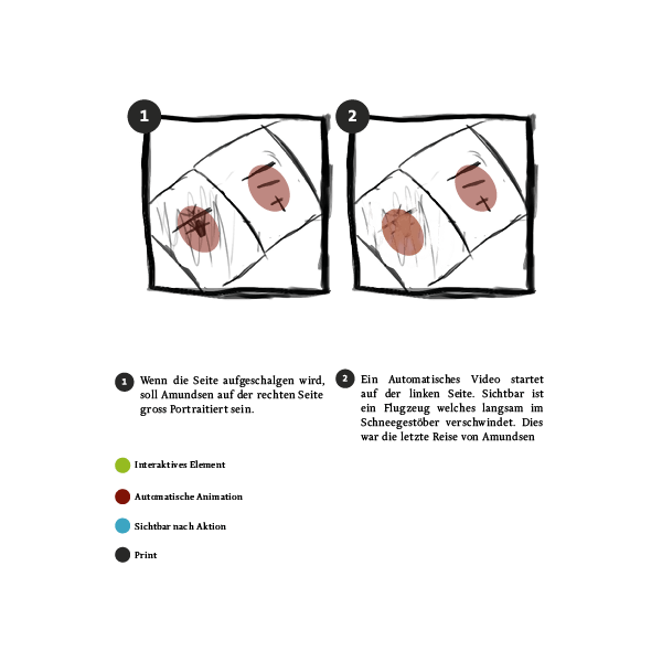 Als Basis für die Interaktionen und Animationen dienten uns verschiedene Storyboards, die mit möglichen Interaktionen ergänzt wurden.