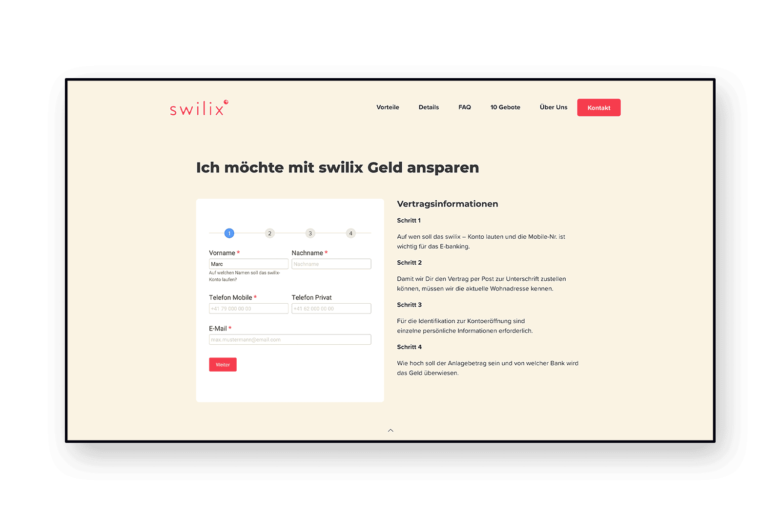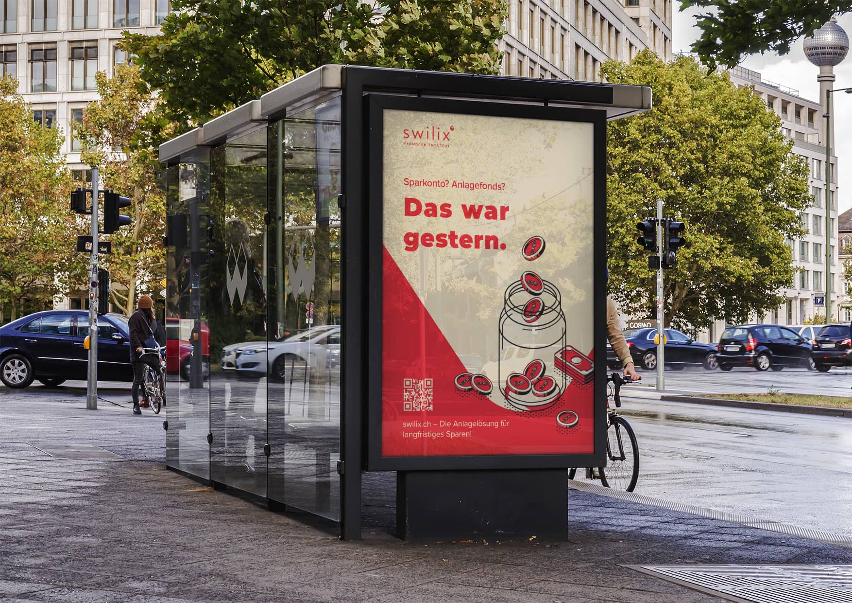 Erstellen eines Konzeptes und eines Markenauftritts für ein neu eingeführtes Produkt. swilix, eine Säule-3a-Alternative, soll sich in einem frischen und modernen Erscheinungsbild an seine Zielgruppe richten und sowohl für Print als auch Web funktionieren.